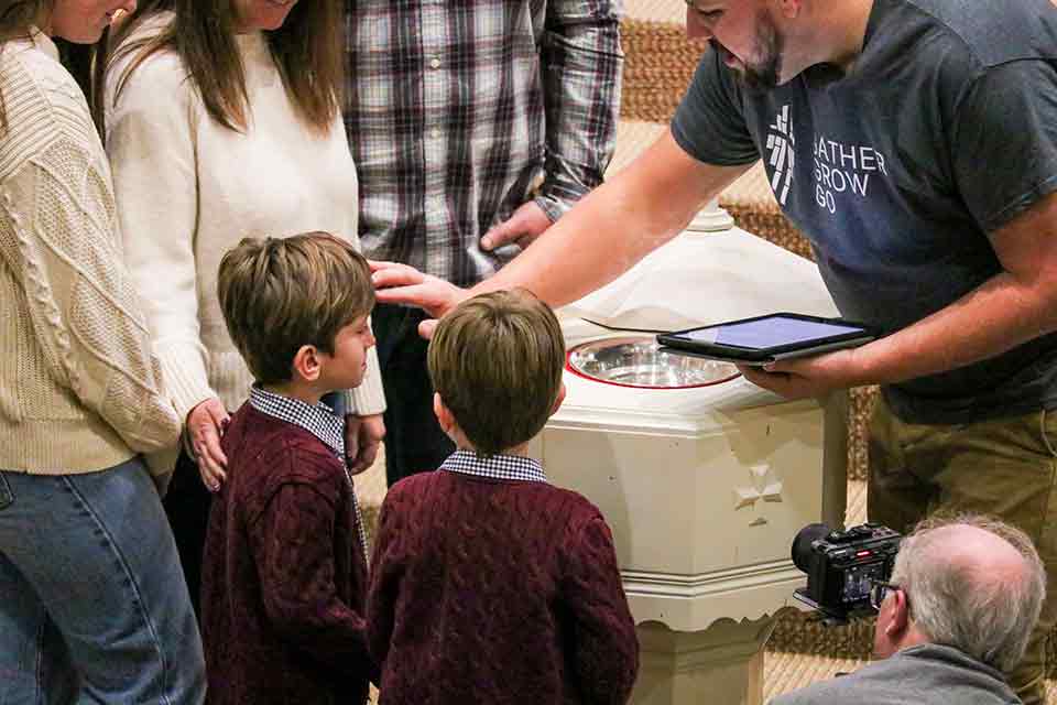 Quarterly classes and inclusive services ensure that everyone can participate in and understand baptism. Dinnell even incorporates the church’s children into services, encouraging them to gather around the baptismal font and immersion tub. “We allow them to put their hands in the water and pray over it with me,” he said. “I want them to be able to touch it, feel it.”